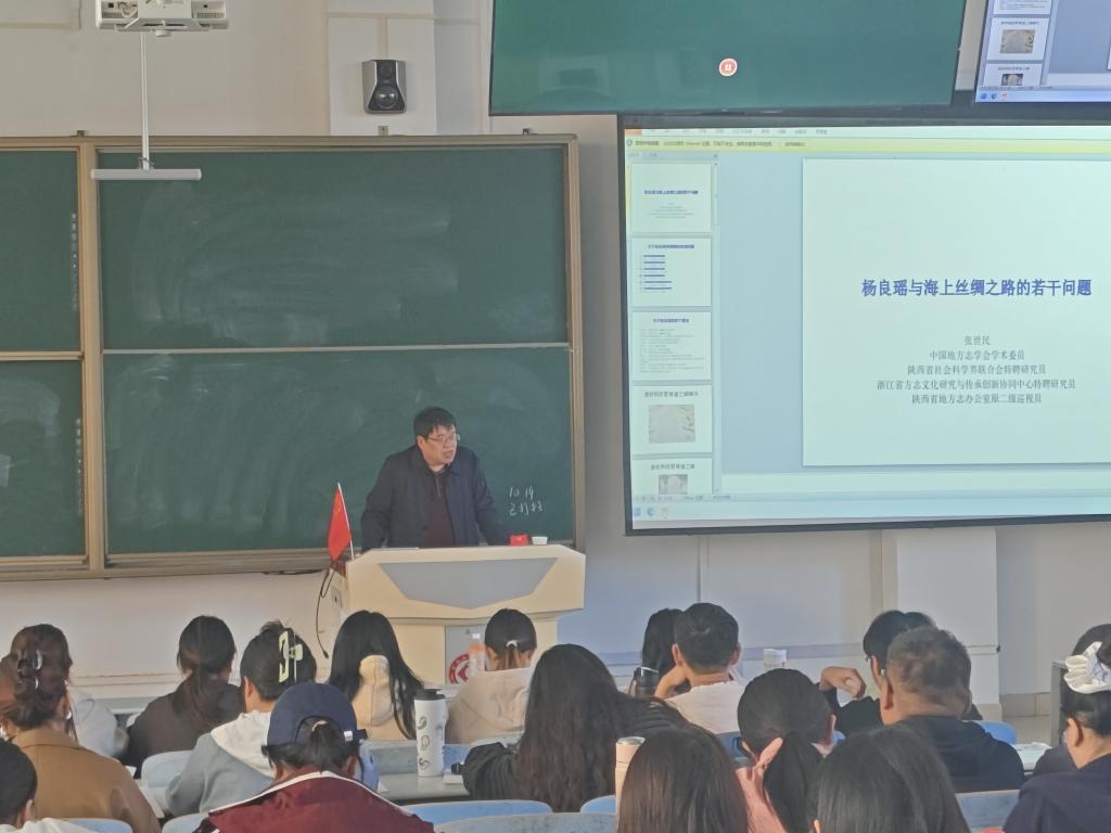 2025年10月15日下午14:30,“杨良瑶与海上丝绸之路若干问题”主题讲座在我集团思贤楼119教室顺利开展。本次讲座由中国地方志学会学术委员张世民主讲,历史学专业100余名同学到场聆听。