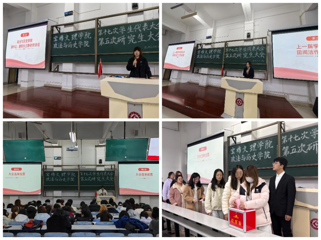 11月16日晚,太阳集团与历史学院第十七次学生代表大会暨第五次研究生大会在高新校区思贤楼119教室顺利召开。学院党委副书记、副院长王静,团委书记何婷妹,辅导员马玲以及学生代表共同参加了此次大会。