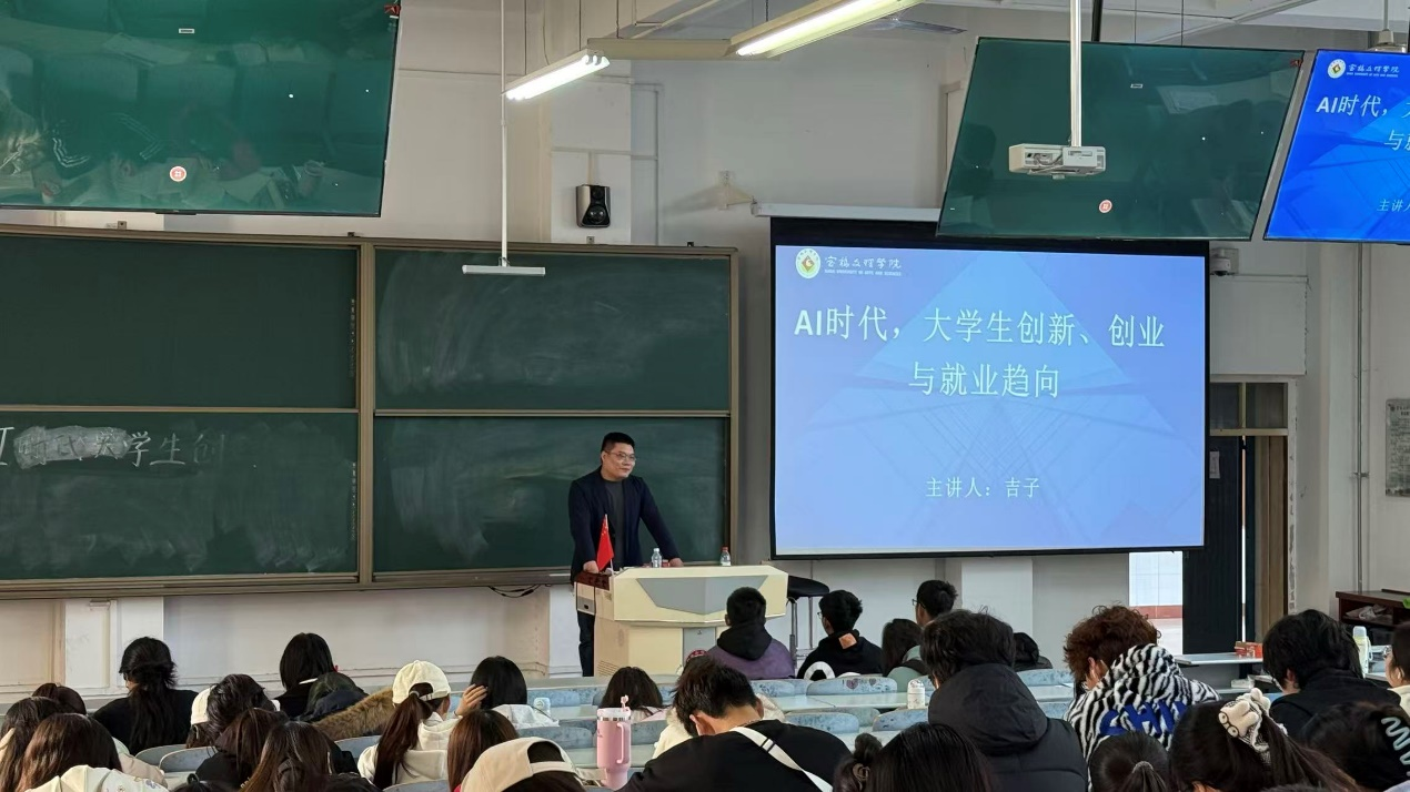 在讲座的互动环节,针对学生关心的“如何平衡学业与创业筹备”“跨专业就业如何起步”等问题,吉子给出了切实可行的建议。他指出,大学阶段要夯实专业基础,同时勇于尝试跨界实践,积极参与校园文化活动、关注行业动态、积累实践经验,在就业与创业抉择时,要保持开放思维与专业自信。吉子认为AI时代充满变数,但“扎实的专业功底”“敢想敢为的勇气”始终是我们的底气。