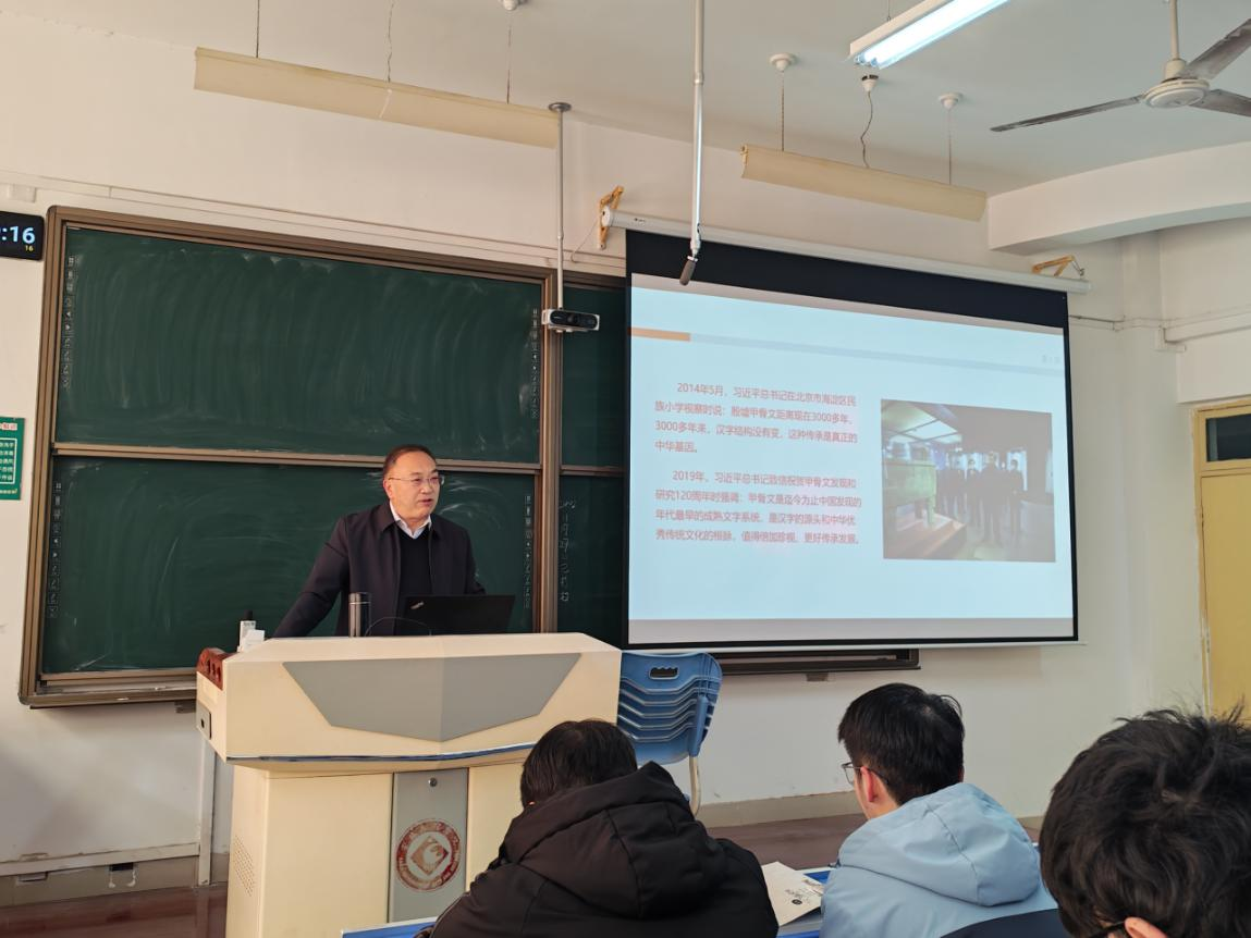 11月28日上午,在立心楼526多媒体教室,河南省甲骨文研究院二级教授郭旭东应邀为我集团师生做了题为《中华基因——甲骨文的价值与研究现状》的学术报告。报告会由我集团副院长崔丽萍主持。历史学专业部分教师与2023级全体学生参加了报告会。